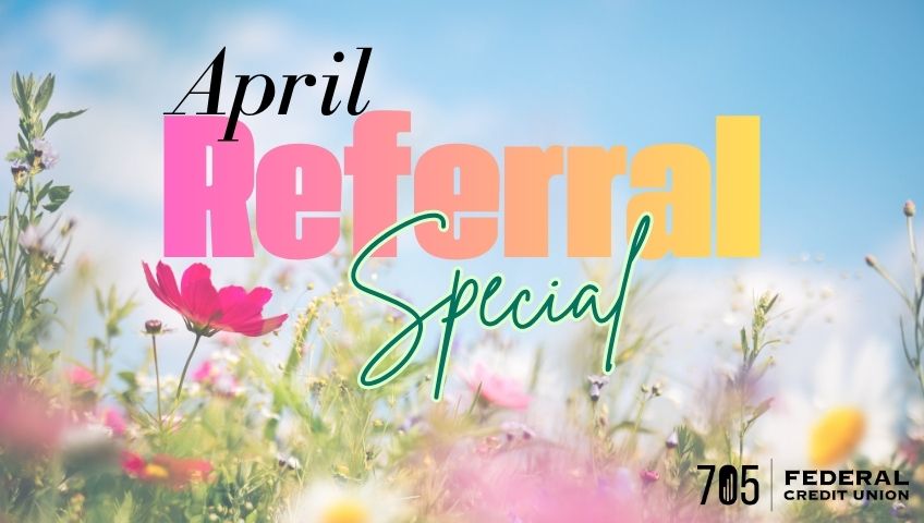 This April, when you refer friends, family, and coworkers to 705 Federal Credit Union, you could be entered into a drawing to win $100 cash.
